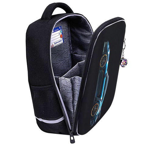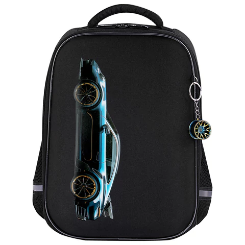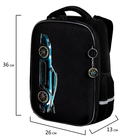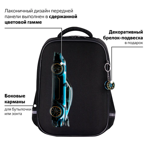 Лаконичный дизайн передней панели выполнен в сдержанной цветовой гамме. В сочетании с оригинальным брелком-подвеской, который дополняет дизайн, ранец выглядит стильно.