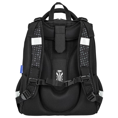 Удобная мягкая вентилируемая спинка с воздушными спонжевыми панелями разработана с учетом анатомических особенностей детей младшего школьного возраста. При правильной регулировке ранец будет практически не ощущаться на плечах и не будет доставлять дискомфорт при носке. В процессе эксплуатации равномерное распределение нагрузки позволит сохранить правильную осанку!