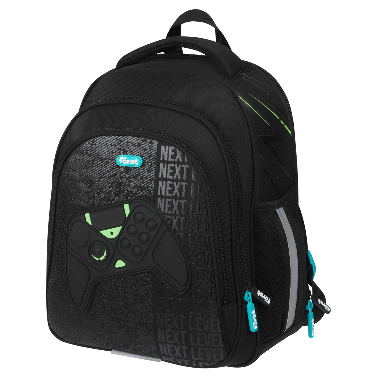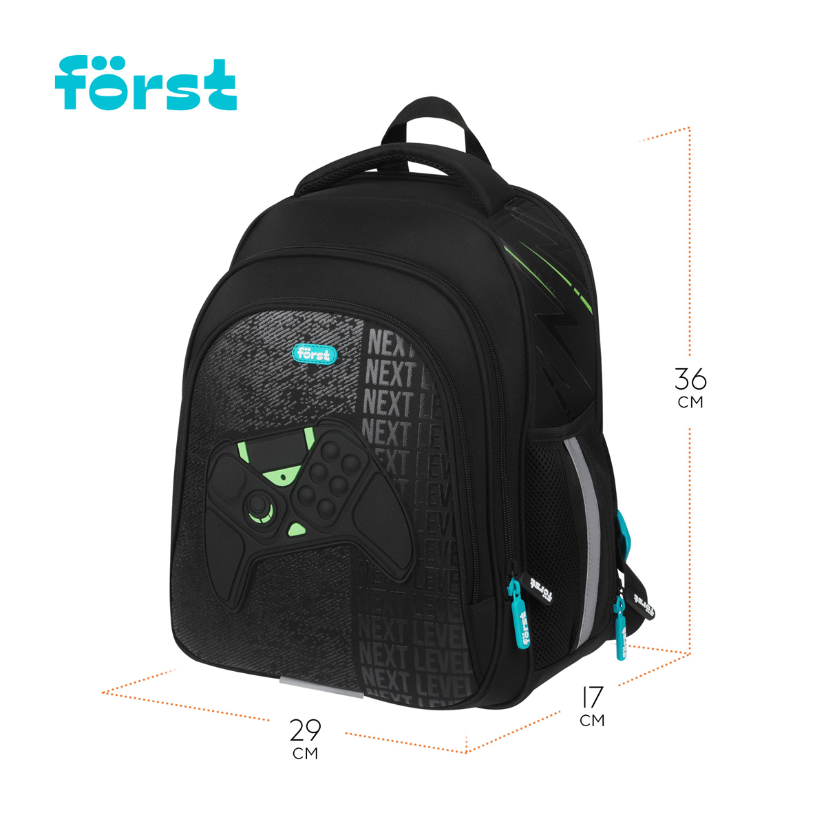 Ранец Först серии F-BASE "Play the game" предназначен для учеников младших и средних классов. Размер — 36*29*17 см. Объём — 17,7 литра. В ранец с тремя отделениями и двумя внешними карманами поместится всё необходимые. Внутри есть разделители для тетрадей и учебников, органайзер для письменных принадлежностей.