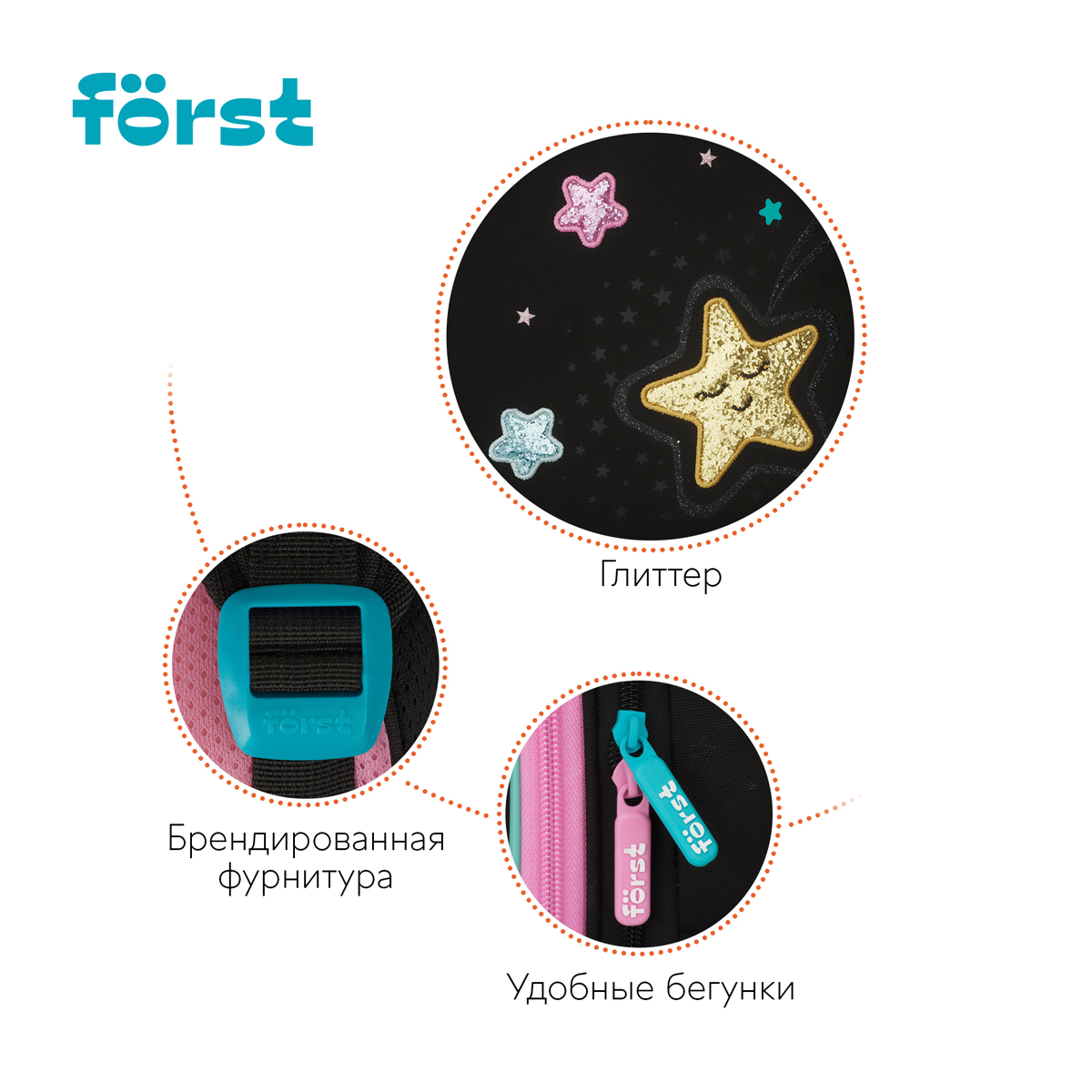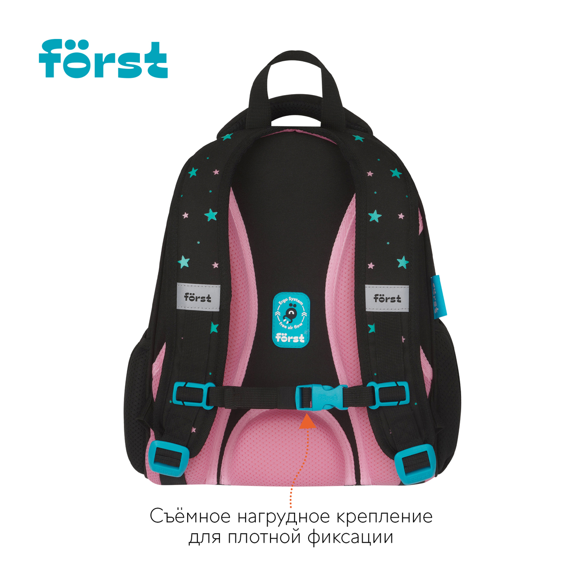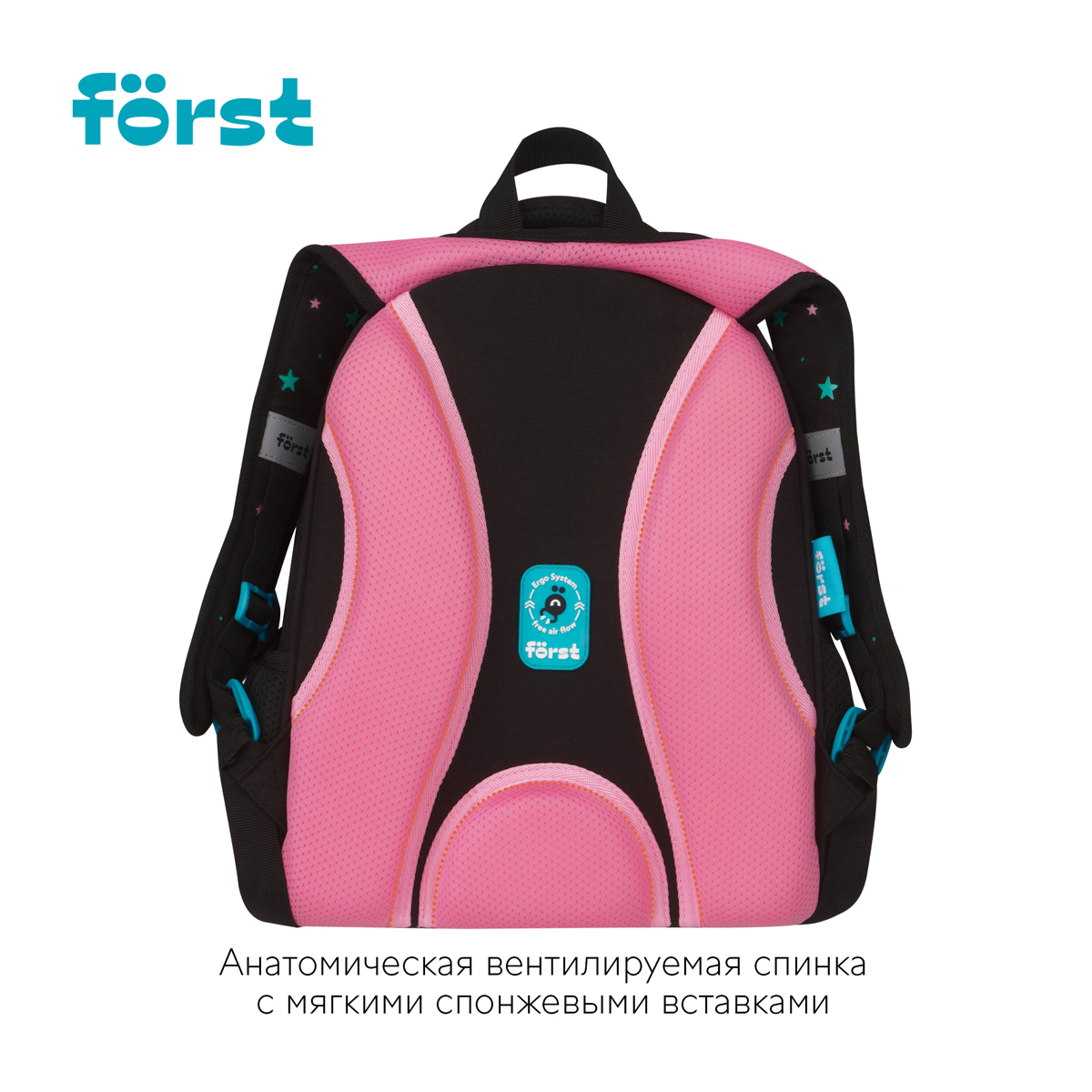 Эргономичный ранец серии F-Top рассчитан на учеников младшей и средней школы. В ранце предусмотрены 2 отделения с разделителями для тетрадей, 2 боковых кармана, внутренний органайзер, эргономичные лямки, уплотненные боковинки. Модель оснащена правильной анатомической спинкой со спонжевыми вставками, покрытыми мягким вентиляционным материалом, который предотвращает натирание спины и плеч ребенка. Нагрудное крепление обеспечивает плотную фиксацию ранца, не дает лямкам спадать с плеч во время движения. Дно ранца покрыто водонепроницаемым материалом и оснащено пластиковыми ножками для защиты содержимого от влаги и легкого ухода за изделием. Наличие светоотражающих элементов – это важный фактор безопасного движения ребёнка в тёмное время суток.