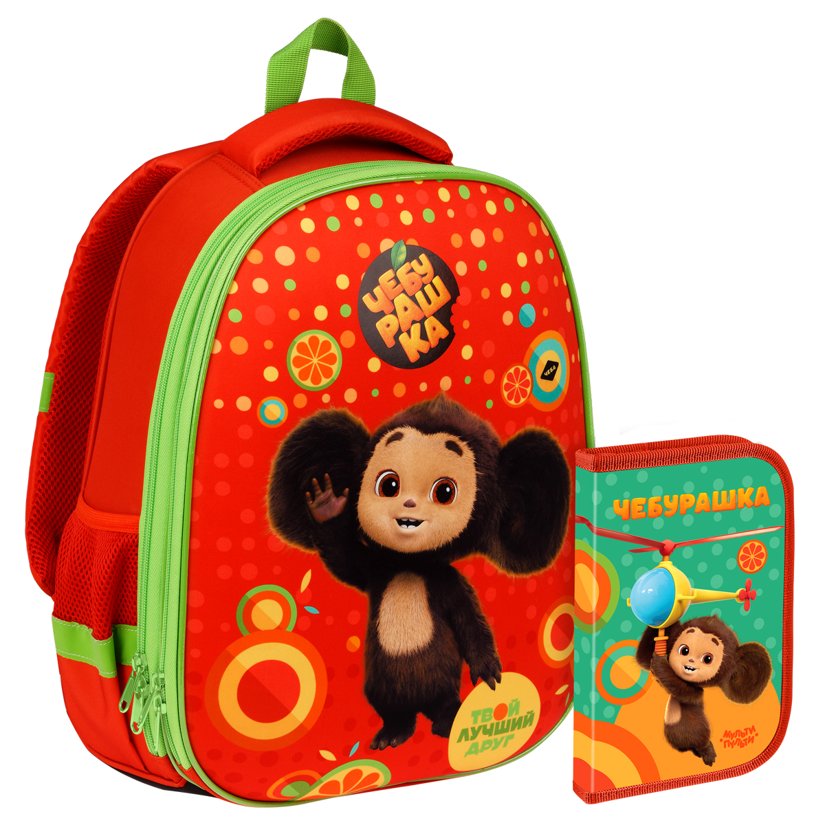 Ранец «Мульти-Пульти» с Чебурашкой подходит для учащихся младших и средних классов. Он состоит из двух отделений и двух боковых карманов. Размер — 39*30*18 см. Благодаря внутренним секциям в ранце легко поддерживать порядок.