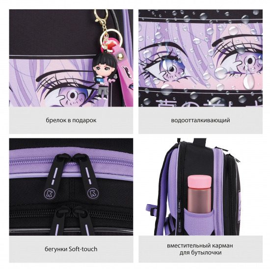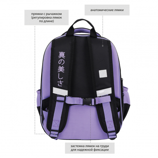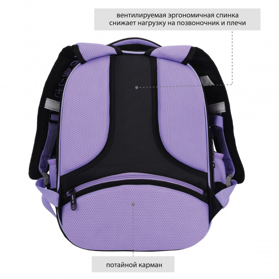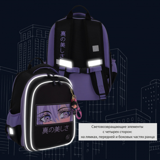 Световозвращающие вставки на лямках, передней и боковых частях ранца обеспечивают безопасность ребёнка в тёмное время суток.