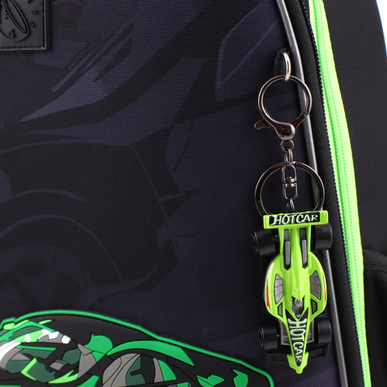Дополнительное жёсткое отделение включает в себя карман-сетку и карман на молнии для канцелярских принадлежностей.