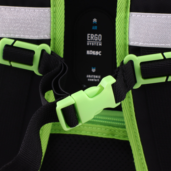 Вентилируемая эргономичная спинка ранца равномерно распределяет нагрузку на позвоночник. Также на спинке расположен дополнительный потайной карман.