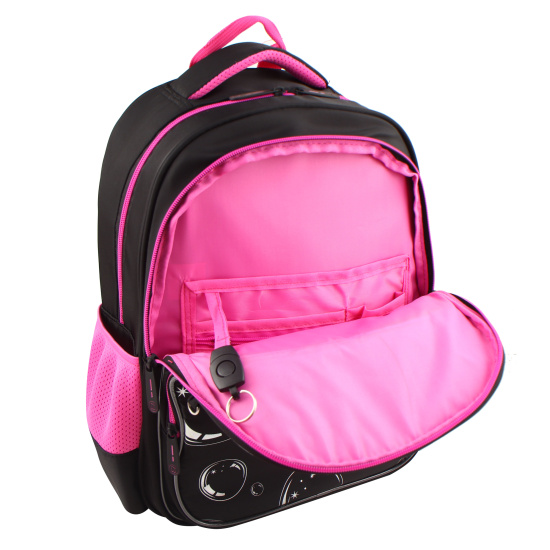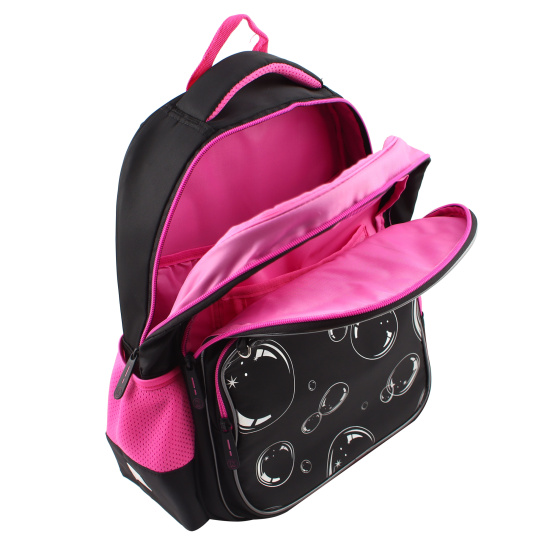 Два вместительных отделения оснащены карманом на резинке и органайзером для письменных пренадлежностей, что позволяет равномерно распределить учебные пособия.