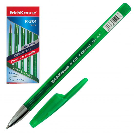 Ручка, гелевая, пишущий узел 0,5 мм, цвет чернил зеленый, Gel Stick, Original, Erich Krause, 45156