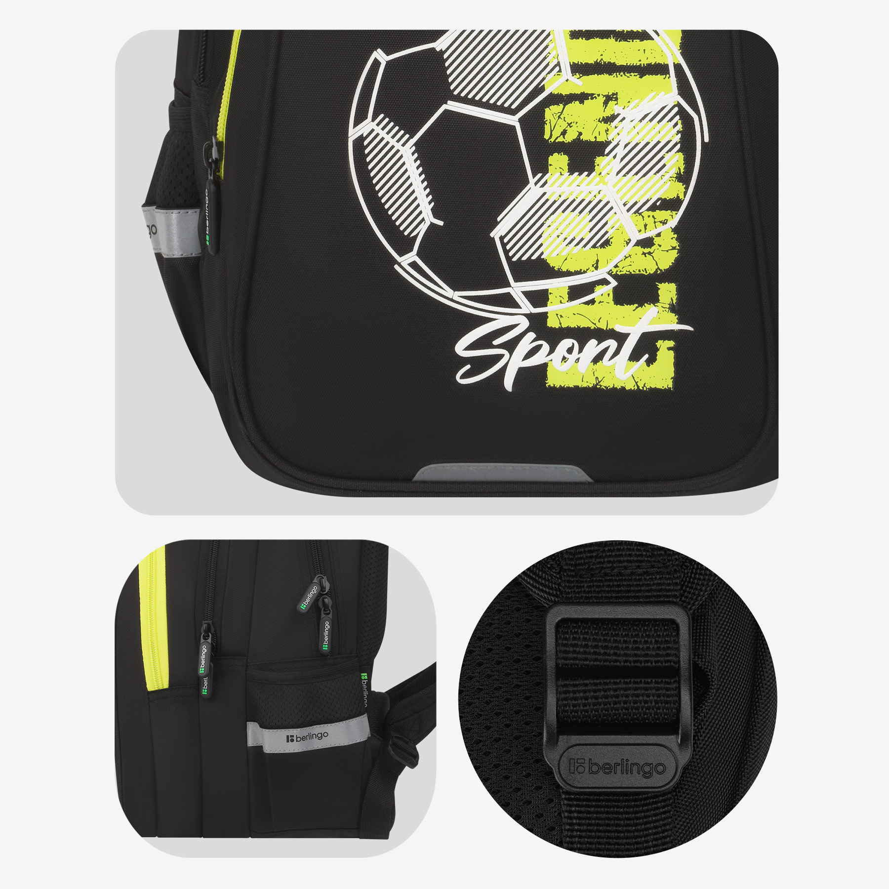 Эргономичный рюкзак Berlingo серии Comfort Go — отличный выбор для детей младшего и среднего школьного возраста. Имеет три отделения и два кармана. В него поместится всё необходимое. Размер — 38*27*18 см. Внутри — один карман на резинке, один открытый карман и карман из сетки на молнии. Рюкзак сделан из полиэстера. Модель весит не более 770 граммов и вмещает до 18,5 литра. Эргономичная вентилируемая спинка с мягкими спонжевыми подушечками, широкие регулируемые лямки и нагрудное крепление обеспечивают равномерное распределение нагрузки на позвоночник. Усиленное дно, плотная ручка для переноски и ручка-петля делают рюкзак максимально удобным. Световозвращающие элементы помогают обеспечить безопасность ребенка в темное время суток. Рюкзак закрывается на пластиковую молнию с удобными бегунками. Дизайн рюкзака включает фактурную печать. Изделие упаковано в пакет.