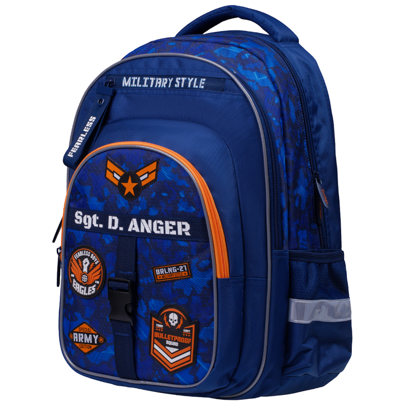 Эргономичный рюкзак предназначен для учеников начальной и средней школы и является отличной альтернативой жестким ранцам. Формованная спинка из экологичного ЭВА материала устойчива к деформации, создана с учетом анатомического строения спины ребенка, имеет вентиляционные каналы для свободной циркуляции воздуха. Плотные лямки с возможностью регулировки и нагрудный фиксатор позволяют равномерно распределить нагрузку на спину ребенка. В рюкзаке предусмотрены 2 отделения, 2 передних кармана, 2 боковых кармана, уплотненное дно с откидной пластиковой планкой. Внутри имеется органайзер и отделение для учебных пособий. Световозвращающие элементы расположены на лямках, спинке и боковых частях ранца.