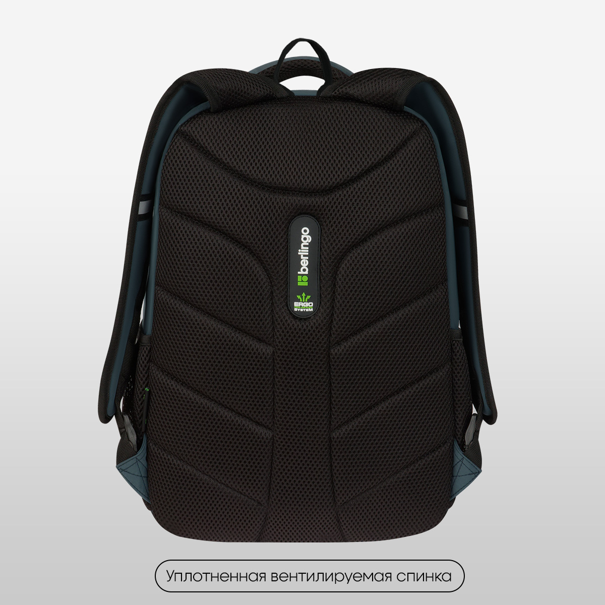 Рюкзак Berlingo серии ErgoSmart — отличный выбор для детей среднего и старшего школьного возраста. В два отделения и четыре кармана помещается всё необходимое. Размер — 42*29*16 см. Внутри — один карман на резинке и удобный органайзер. Рюкзак сделан из прочного полиэстера. Модель весит не более 600 граммов и вмещает до 19,5 литров. Эргономичная вентилируемая спинка, широкие регулируемые лямки и нагрудное крепление обеспечивают равномерное распределение нагрузки на позвоночник. Уплотненное дно, плотная ручка для переноски и ручка-петля делают рюкзак максимально удобным в носке. Светоотражающие элементы с четырёх сторон помогают обеспечить безопасность ребёнка в темное время суток. Рюкзак закрывается на пластиковую молнию с удобными бегунками. Изделие упаковано в пакет.