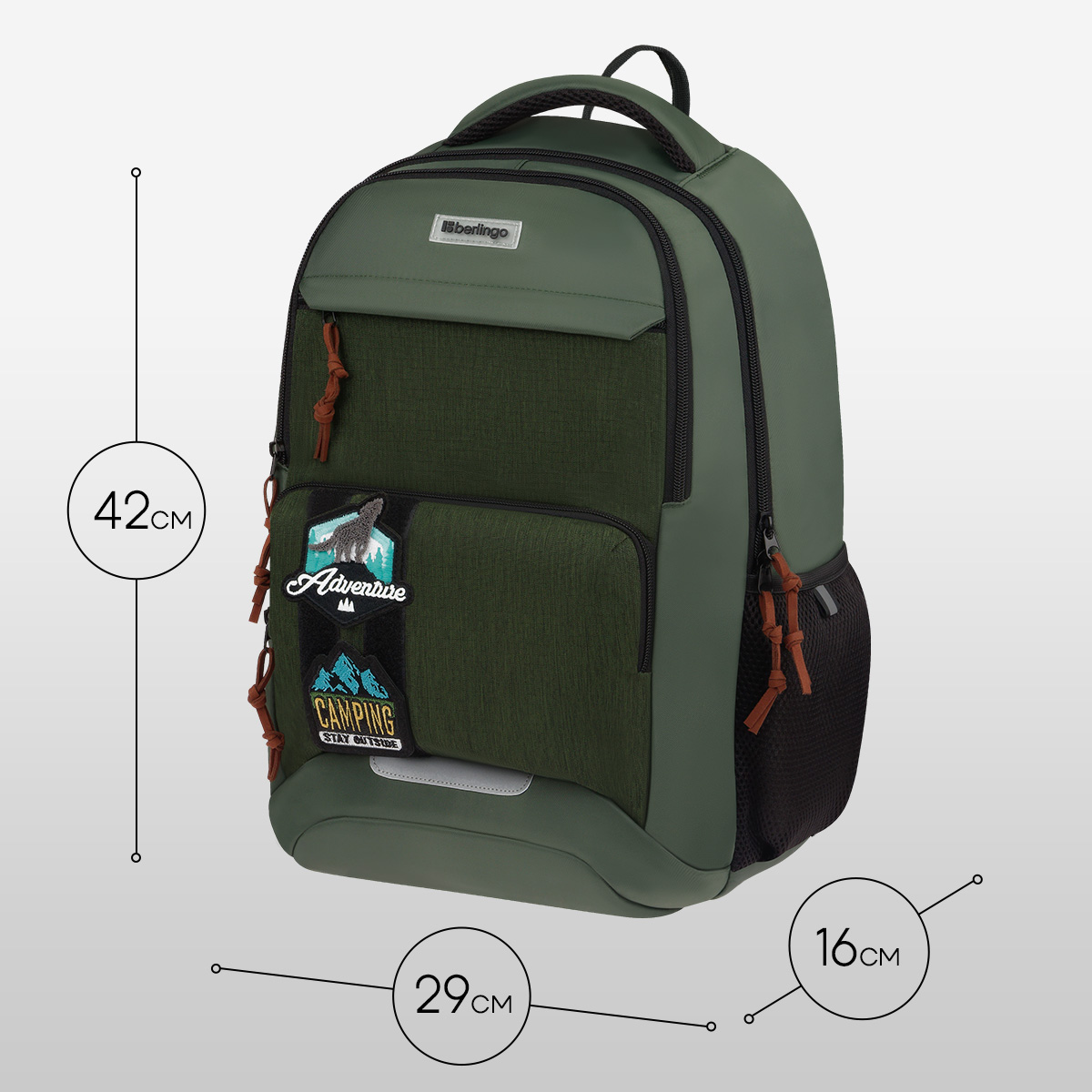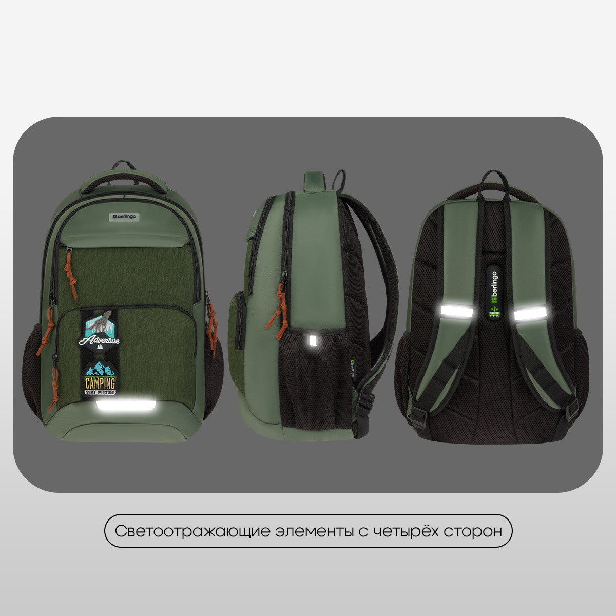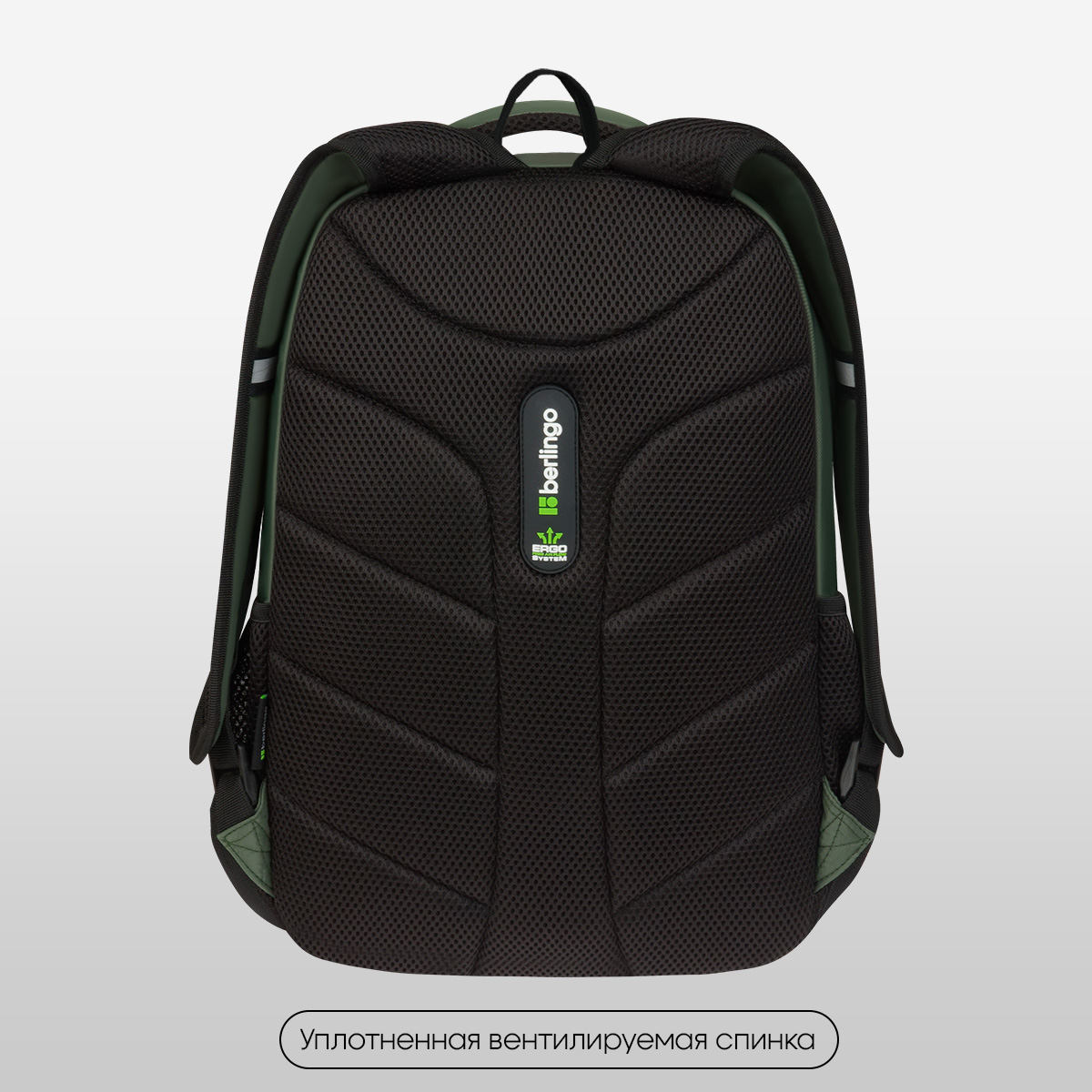 Рюкзак Berlingo серии ErgoSmart — отличный выбор для детей среднего и старшего школьного возраста. В два отделения и четыре кармана помещается всё необходимое. Размер — 42*29*16 см. Внутри — один карман на резинке и удобный органайзер. Рюкзак сделан из прочного полиэстера. Модель весит не более 600 граммов и вмещает до 19,5 литров. Эргономичная вентилируемая спинка, широкие регулируемые лямки и нагрудное крепление обеспечивают равномерное распределение нагрузки на позвоночник. Уплотненное дно, плотная ручка для переноски и ручка-петля делают рюкзак максимально удобным в носке. Светоотражающие элементы с четырёх сторон помогают обеспечить безопасность ребёнка в темное время суток. Рюкзак закрывается на пластиковую молнию с удобными бегунками. Изделие упаковано в пакет.