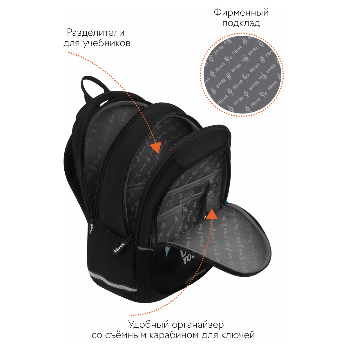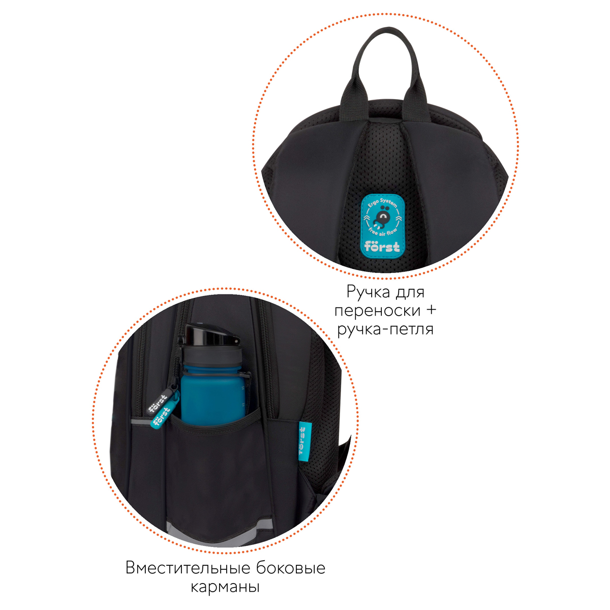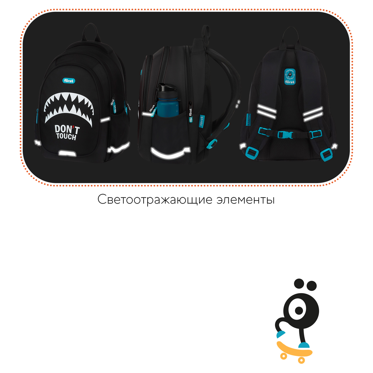 Рюкзак с жесткой анатомической спинкой Först F-Cute размером 37*29*17 см и объёмом 18 литров с тремя отделениями, двумя карманами для детей младшего и среднего школьного возраста. Внутри — разделители для учебников, органайзер и съемный карабин для ключей. Жесткая эргономичная спинка равномерно распределяет нагрузку без вреда для осанки. Внешнее покрытие спинки — мягкий вентиляционный материал премиального качества обеспечивает комфорт, а также предотвращает запотевание спины ребенка. Нагрудное крепление плотно фиксирует рюкзак, не дает лямкам спадать с плеч во время движения. Высота крепления регулируется. Дно рюкзака покрыто водонепроницаемым материалом для защиты содержимого от влаги и легкого ухода за изделием. Светоотражающие элементы — для безопасного передвижения ребенка в темное время суток.