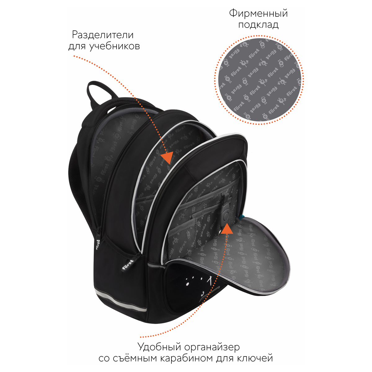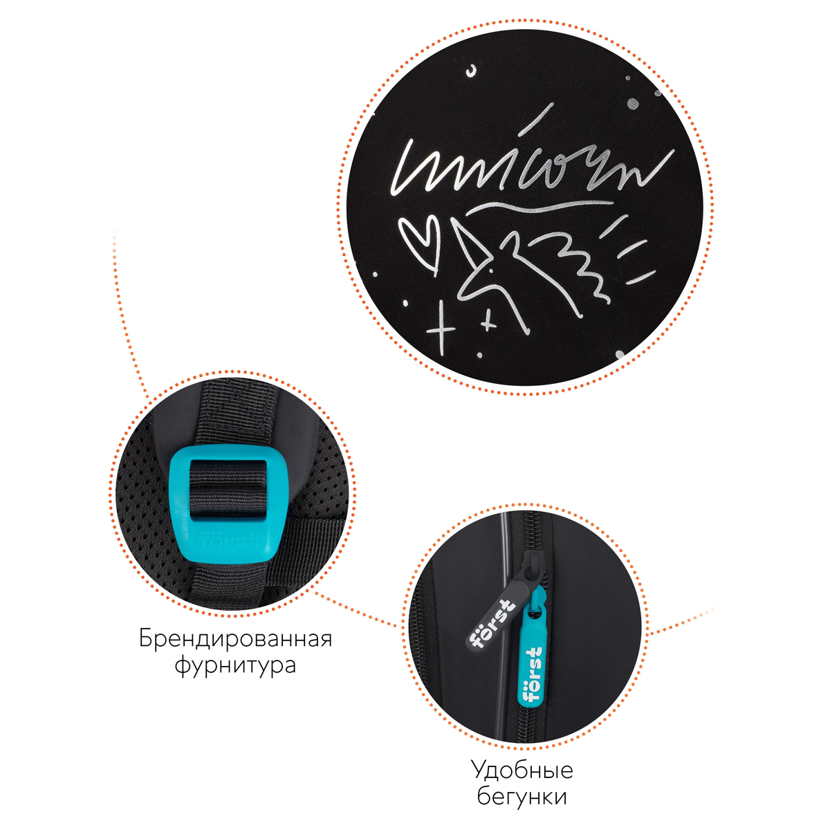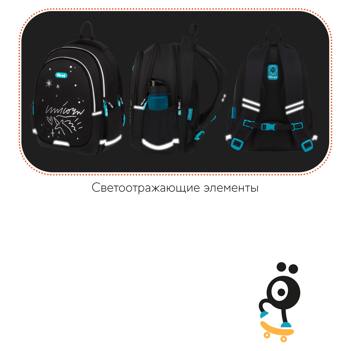 Рюкзак Först серии F-Cute Unicorn — отличный выбор для детей младшего и среднего школьного возраста. Имеет три отделения и два кармана. В него поместится всё необходимое. Размер — 37*29*17 см. Внутри — разделители для учебников, органайзер и съемный карабин для ключей. Рюкзак сделан из высококачественного твила — износостойкого материала. Модель весит не более 720 граммов и вмещает до 18 литров. Жесткая эргономичная спинка равномерно распределяет нагрузку без вреда для осанки. Внешнее покрытие спинки — мягкий вентиляционный материал премиального качества обеспечивает комфорт, а также предотвращает запотевание спины ребенка. Нагрудное крепление плотно фиксирует рюкзак, не дает лямкам спадать с плеч во время движения. Высота крепления регулируется. Дно рюкзака покрыто водонепроницаемым материалом для защиты содержимого от влаги и легкого ухода за изделием. Светоотражающие элементы — для безопасного передвижения ребенка в темное время суток. Рюкзак закрывается на пластиковую молнию с удобными бегунками. Изделие упаковано в пакет.