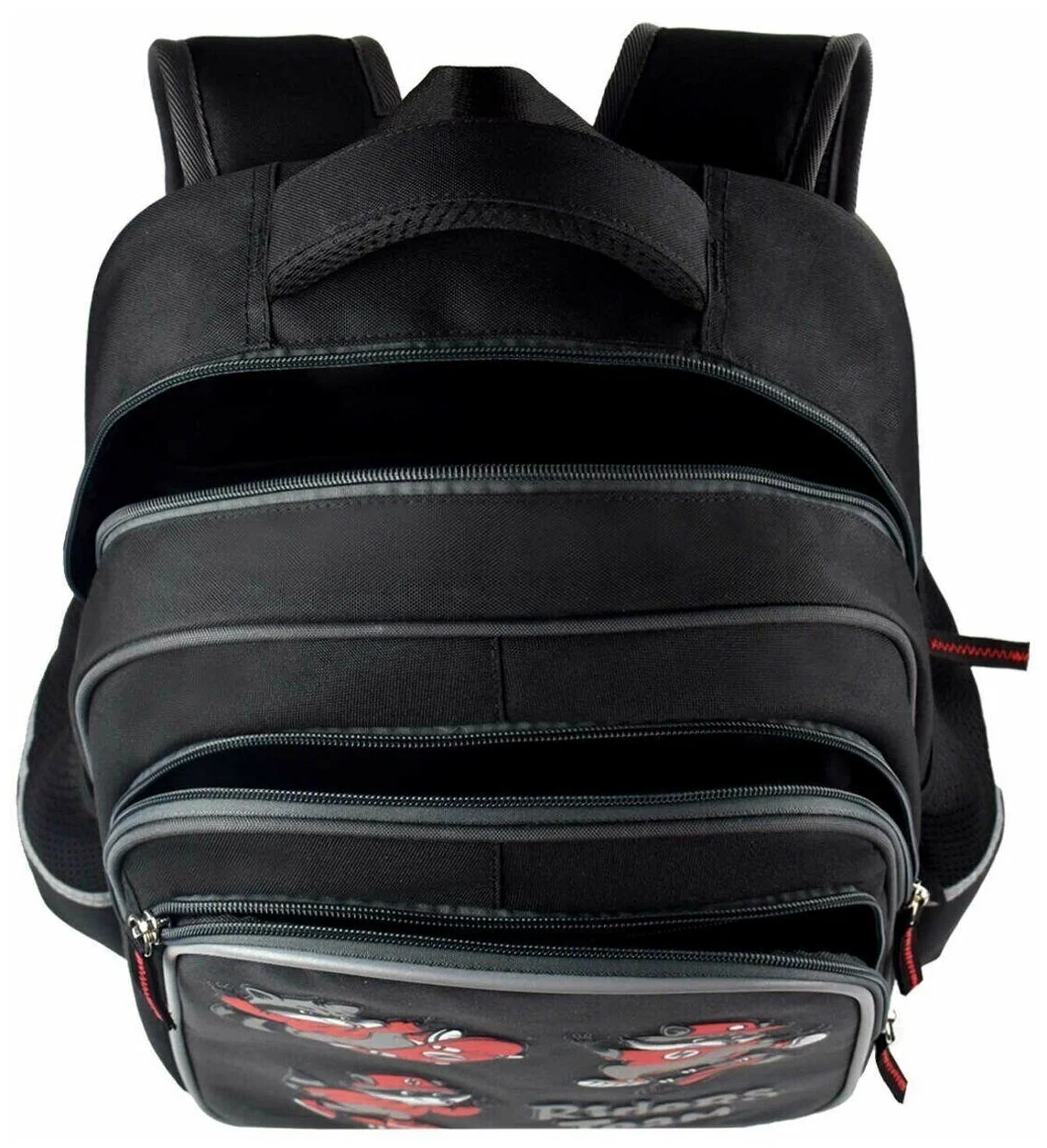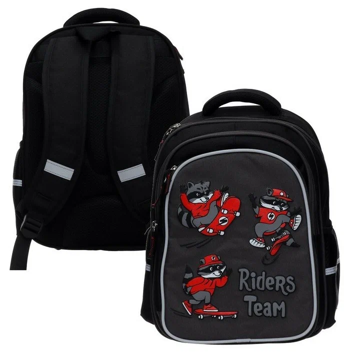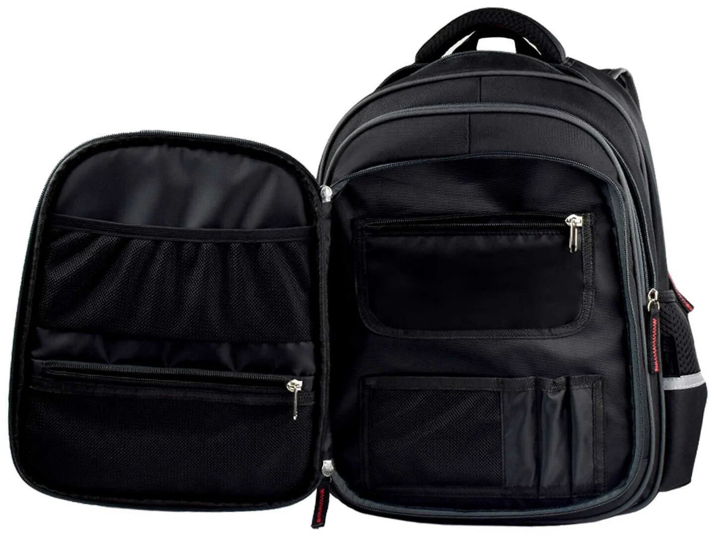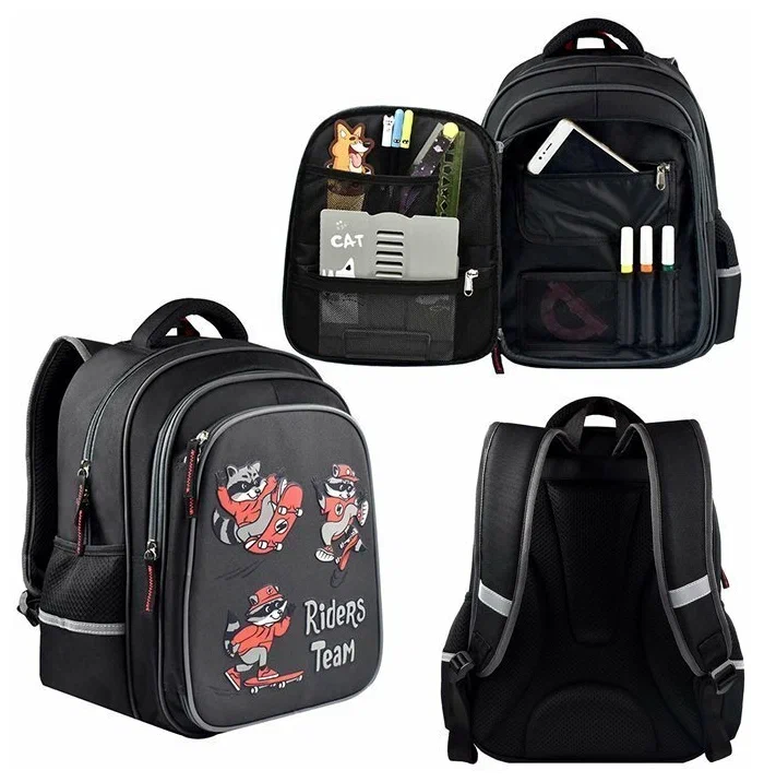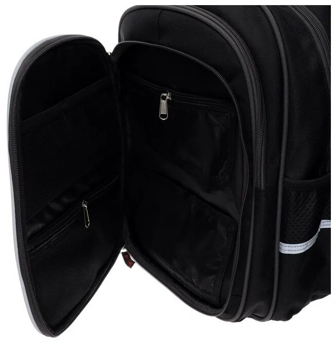 Размер: 29х38,5х13,5 см. Материал: полиэстер. Отделка: высокая печать. Внутренняя организация: карман на резинке, органайзер для канцелярских принадлежностей. Количество отделений: 2. Количество наружных карманов: 3. Подкладка. Тип застежки: молния. Материал ;собачки. лента репсовая. Форма ;собачки хляст. Тип спинки: формоустойчивая спинка из сетчатой ткани и поролона. Тип дна: с пластиковыми ножками. Особенности: водоотталкивающая ткань, лямки, регулируемые по длине, светоотражающие элементы, фронтальный карман с удобной конструкцией и дополнительными отделениями для канцелярских принадлежностей.