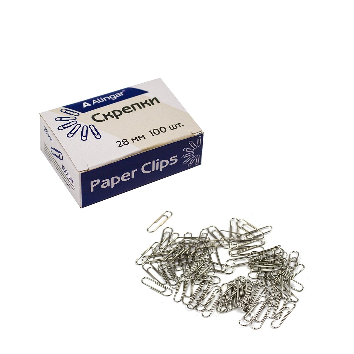 Скрепки 28 мм, Alingar, уп. 100 шт., металлические, никелированные