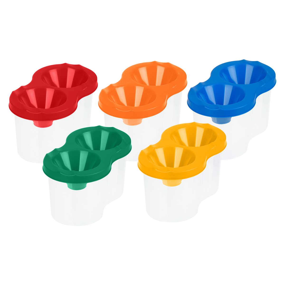 Стакан-непроливайка предназначен для промывания кисточек в процессе рисования. Имеет два отделения. Форма крышек в виде воронки не даст ребенку пролить воду в процессе творчества при опрокидывании. Специальные линии (метки безопасного уровня воды) указывают на оптимальный уровень наполнения стакана водой. На крышках имеются продольные желобки для кисточек. Устойчиво располагается на рабочей поверхности.