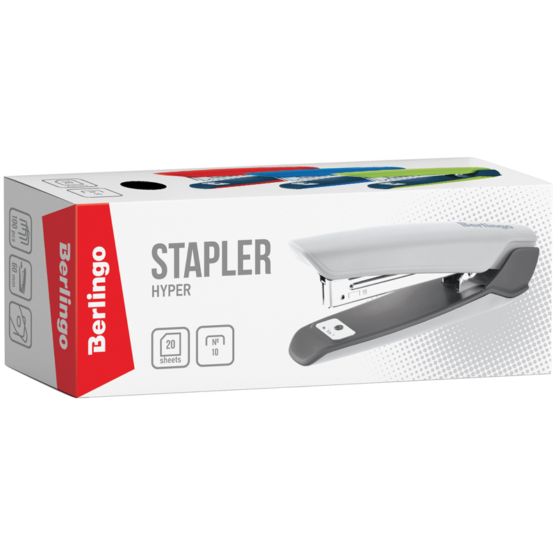 Стильный канцелярский степлер Berlingo Hyper прекрасно подходит для ежедневного использования на рабочем месте. Степлер вмещает 100 скоб размером №10, имеет 1 тип скрепления. Сшивает до 20 листов. Глубина захвата – 60 мм.