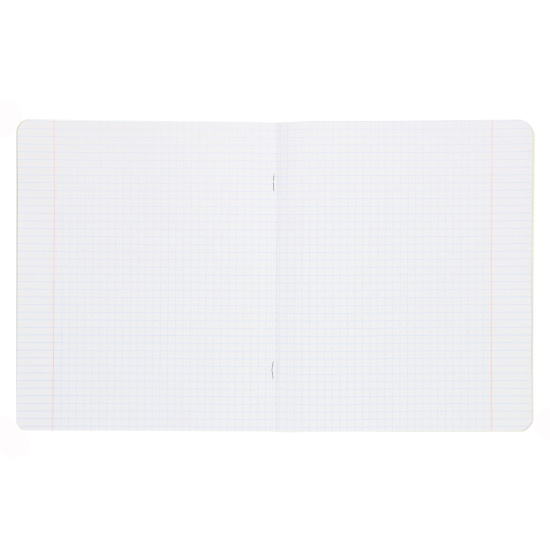 Тетрадь школьная ученическая формата А5+ (170x203 мм). Двойная обложка: внешняя выполнена из высококачественного износостойкого цветного пластика с фактурой «апельсиновая корка», внутренняя — из офсетной бумаги. В блоке 12 листов в клетку. Бумага офсетная плотностью 60 г/м2. Цвет линовки — синий. Скругленные уголки обложки и блока. Тип скрепления — скоба. Тетради упакованы в термоусадочную пленку по 10 штук.