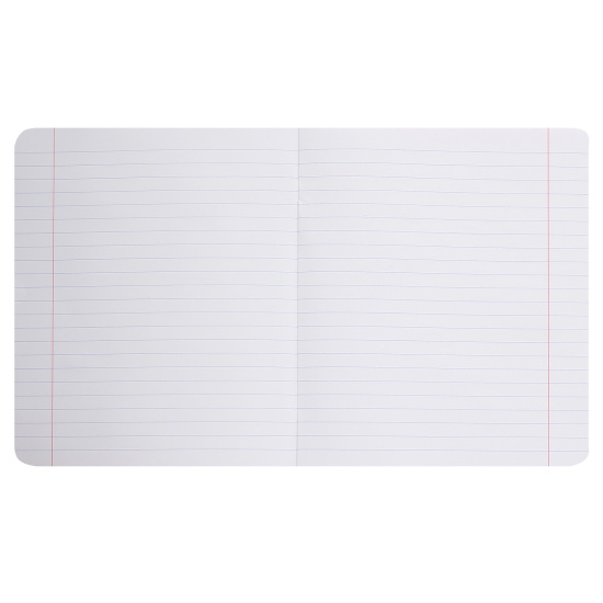 Тетрадь школьная ученическая формата А5+ (170x203 мм). Двойная обложка: внешняя выполнена из высококачественного износостойкого цветного пластика с фактурой «апельсиновая корка», внутренняя — из офсетной бумаги. В блоке 12 листов в линейку. Бумага офсетная плотностью 60 г/м2. Цвет линовки — синий. Скругленные уголки обложки и блока. Тип скрепления — скоба. Тетради упакованы в термоусадочную пленку по 10 штук.