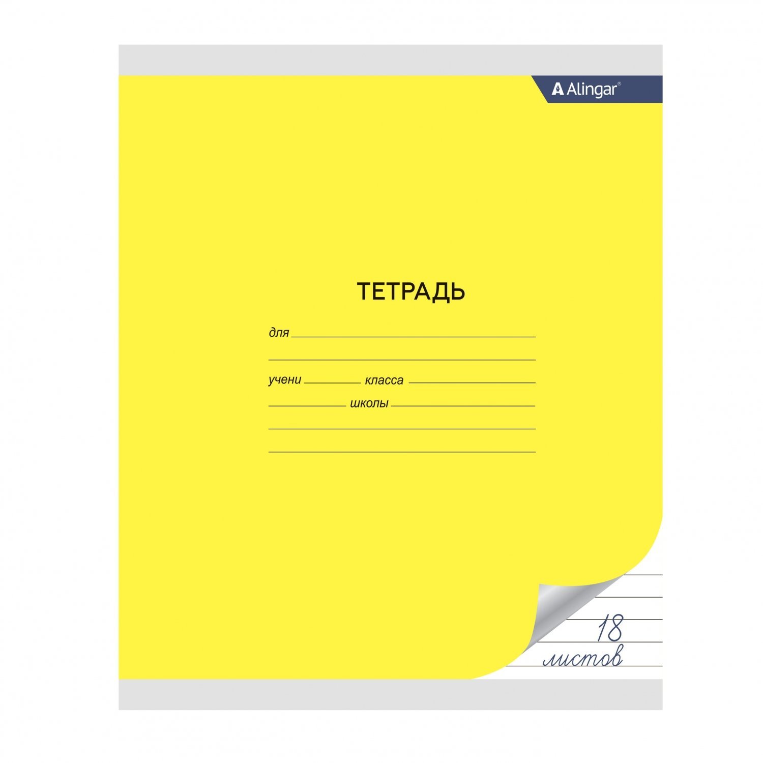 Тетрадь Alingar, 18 листов, линия, желтая