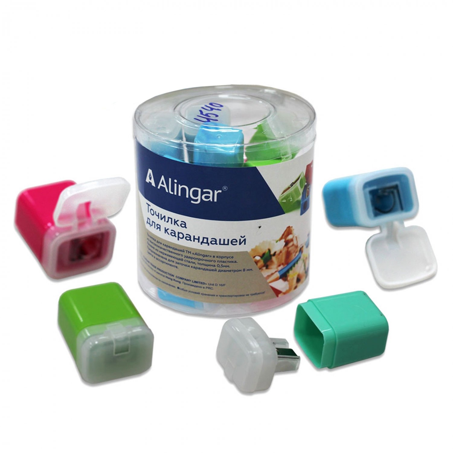 Точилка пластиковая Alingar, 1 отверстие, фигурная, с контейнером, цвет ассорти