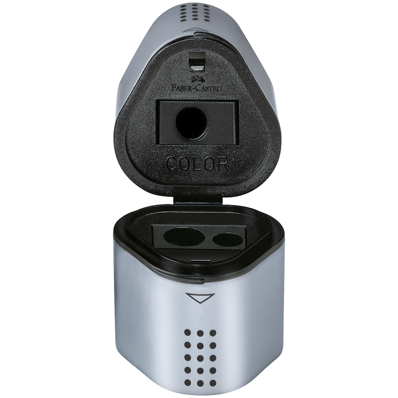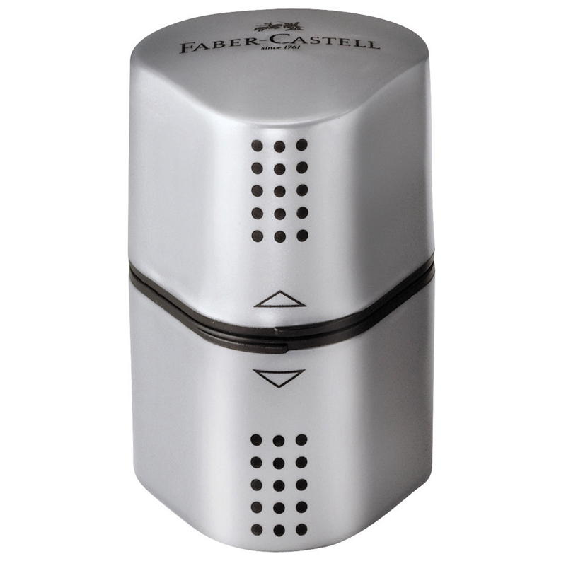 Точилка пластиковая Trio Grip 2001 от легендарного немецкого производителя Faber-Castell в узнаваемом запатентованном дизайне Grip уникальна тем, что имеет 3 отверстия для затачивания карандашей разной формы и назначения для чернографитных карандашей стандартного размера, для цветных карандашей стандартного размера и карандашей Jumbo. Точилка снабжена двумя объемными плотно закрывающимися контейнерами для сбора стружек. Лезвия изготовлены из высококачественной стали с идеальной заточкой, сделаны в Германии. Точилка имеет предохранительные винты, что обеспечивает безопасность эксплуатации Цвет изделия: серый серебристый.