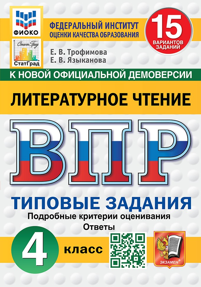 ВПР. ФИОКО. СТАТГРАД. ЛИТЕРАТУРНОЕ ЧТЕНИЕ. 4 КЛАСС. 15 ВАРИАНТОВ. ТЗ. ФГОС НОВЫЙ / Трофимова Е.В.