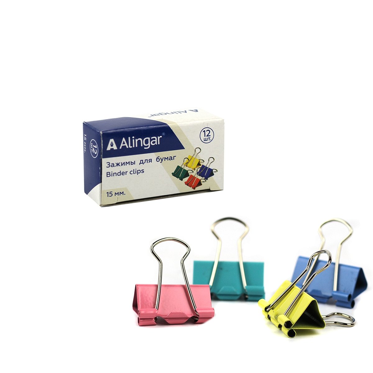 Зажимы для бумаг 15 мм, Alingar, цветные, уп. 12 шт