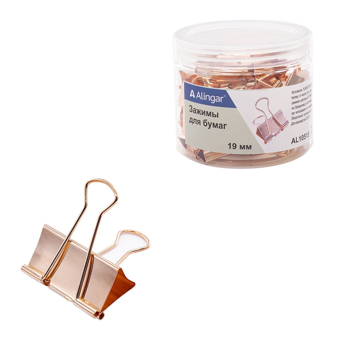 Зажимы для бумаг 19 мм, Alingar, красное золото, уп. 40 шт