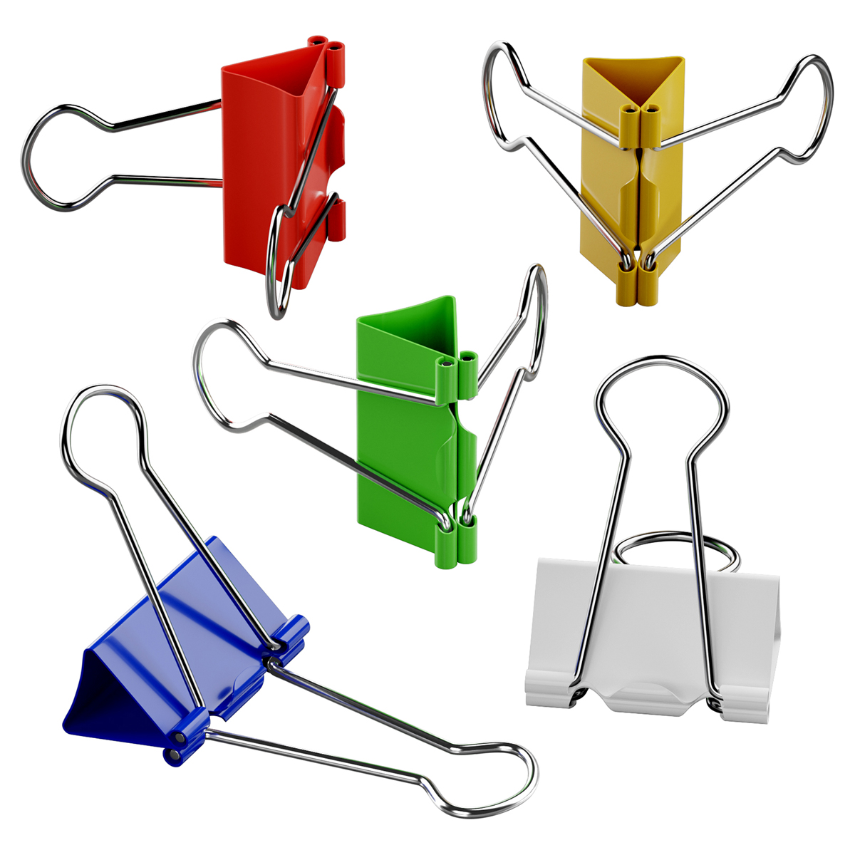 Надежно и легко скрепляют, не деформируют бумагу, не оставляют на ней следов. Материал - металл. Упаковка в картонные коробочки - по 12 шт. Цвет - ассорти.