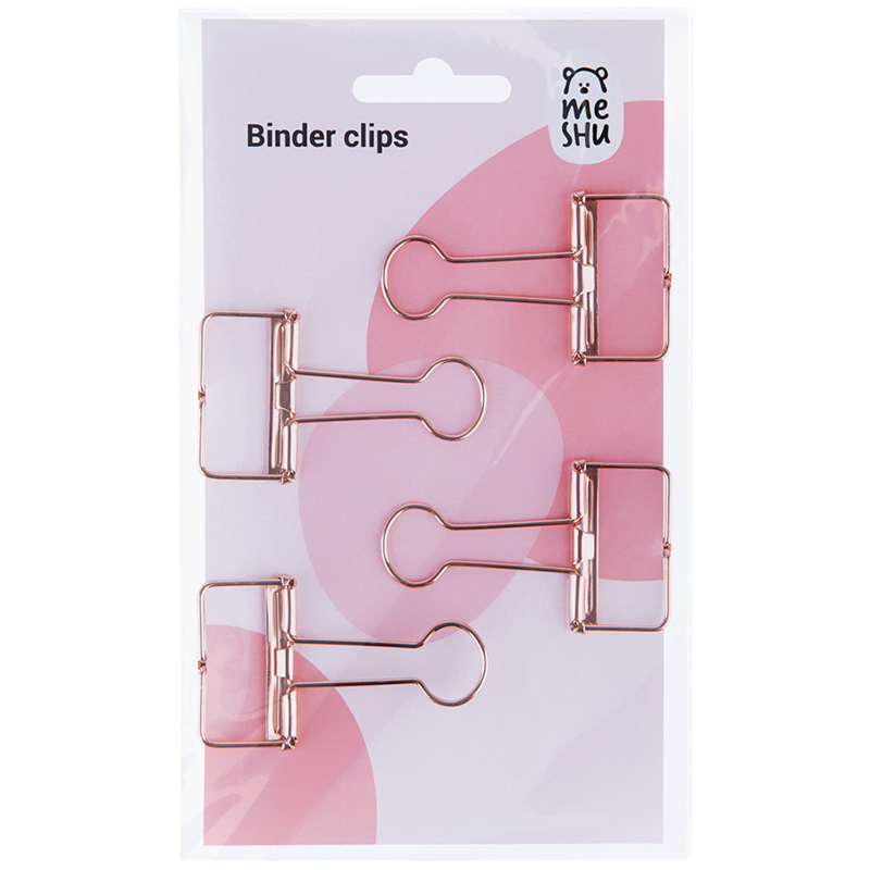 Зажимы для бумаг 32мм, MESHU "Rose Gold", 4шт., пакет с европодвесом